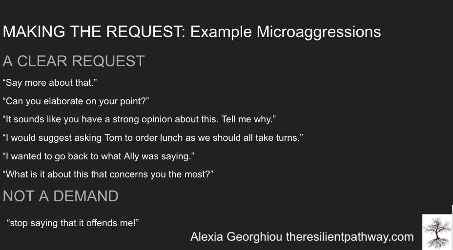Making the request is the final step of our Non-Violent Communication training. This does not necessarily need to be always verbalized. You could wait and see if the other person asks you what you would like to have happen.....what you need...imagine that!