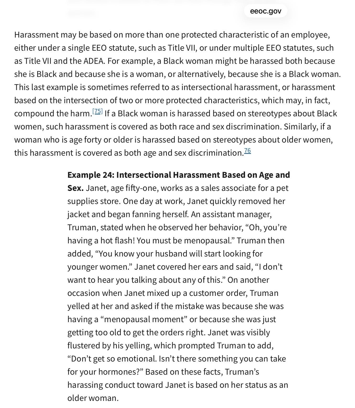 At the federal level, the Americans with Disabilities Act (ADA), Family and Medical Leave Act (FMLA), and Pregnant Workers Fairness Act (PWFA) may offer partial coverage, but these protections are inconsistent and dependent on interpretation. The Equal Employment Opportunity Commission (EEOC)’s 2024 guidance further warns that menopause-related teasing or stereotypes can constitute harassment based on sex and age—highlighting the urgent need for clear, enforceable laws at every level. (page 24).